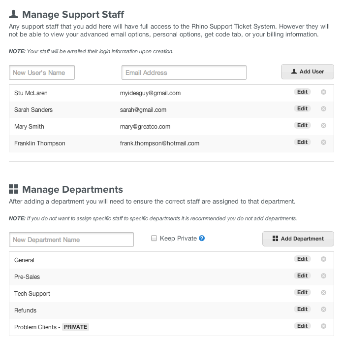 However, if you want to "biggie size" things, you can easily manage support for multiple websites (up to 5) right within the same account. This is perfect for companies that want to keep support for various product lines separate but don't necessarily want to create a whole new account.