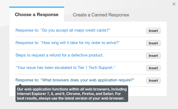 Getting common questions? Use a canned response or create a knowledge base article to save you time.