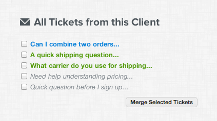 Duplicate or related tickets? Instantly join multiple tickets together with a single click.
