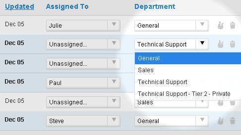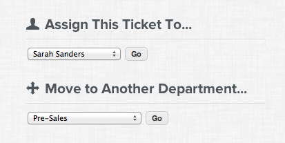 Assign the ticket to another agent or department by selecting from the drop-down.